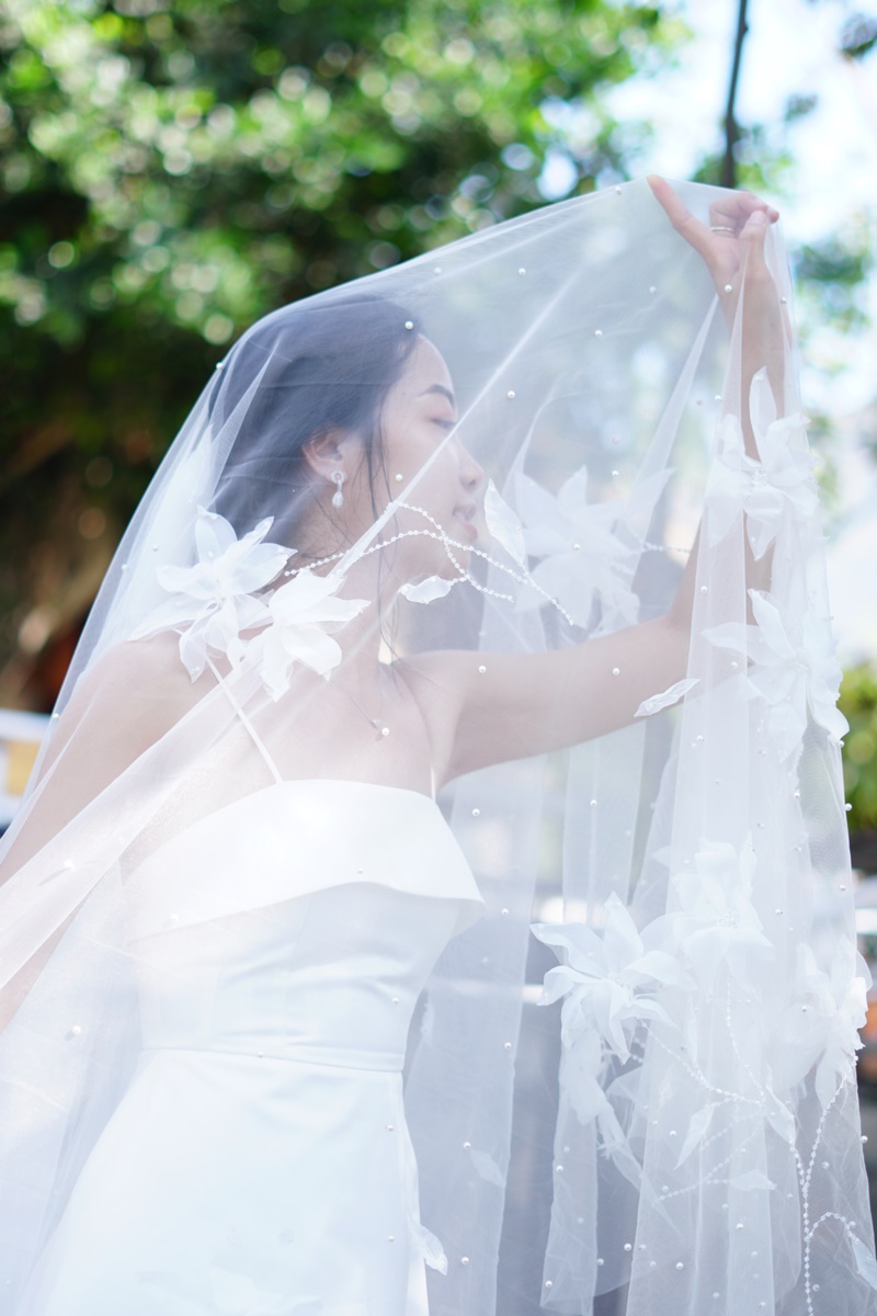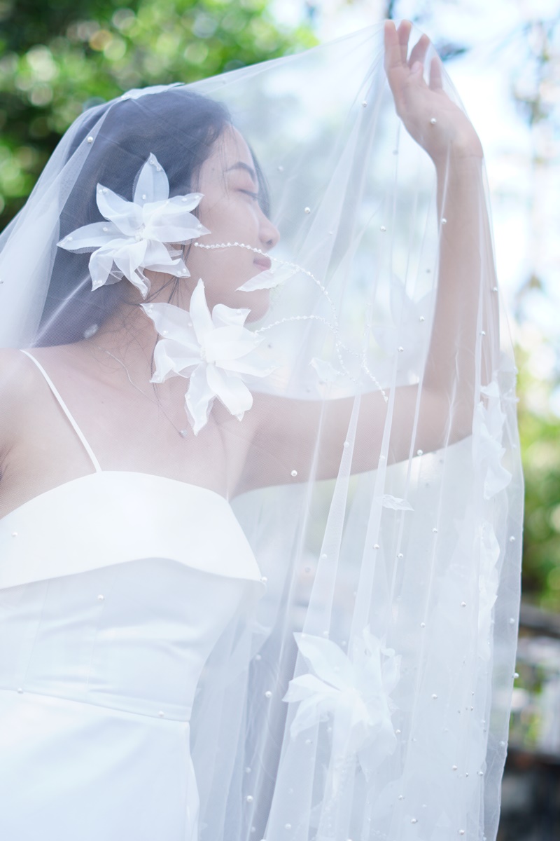 – Chất liệu: Vải tuyn lấp lấp, hoa lụa