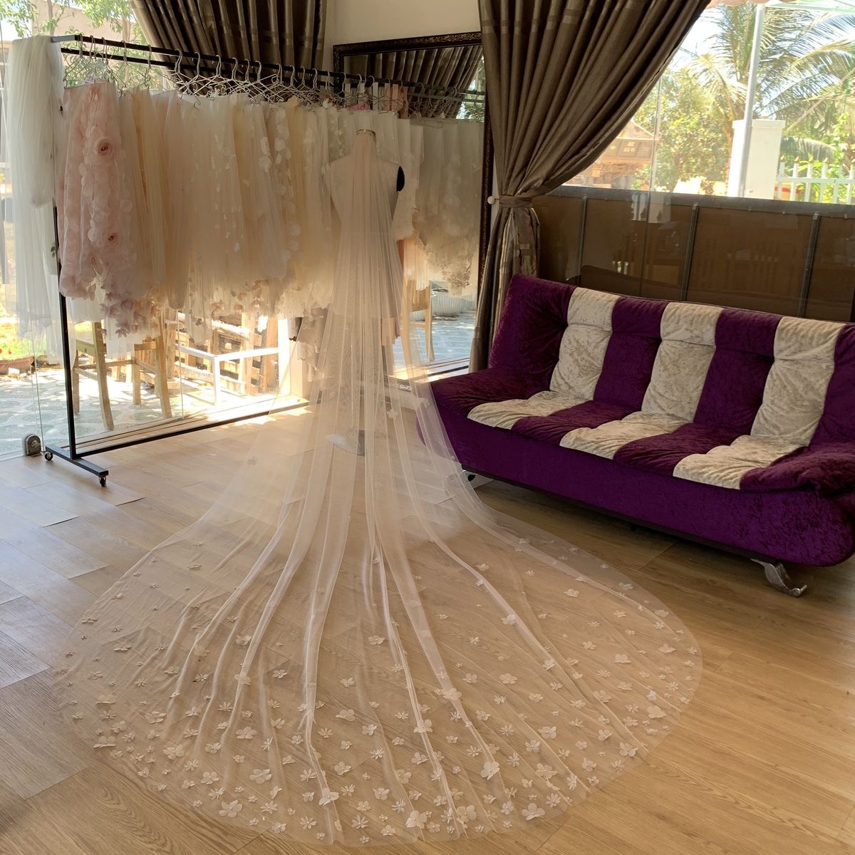 – Chất liệu: Vải tuyn lấp lấp, hoa lụa