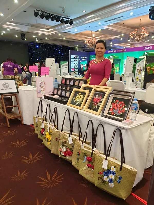 Khi mới bắt đầu khởi nghiệp, em đơn giản chỉ làm vì yêu thích các sản phẩm thêu, vì từ nhỏ đã rất mê may vá, thêu thùa. Trong quá trình em thêu tranh để treo cho căn nhà mơ ước của hai vợ chồng, cơ duyên đưa em đến với nghề thêu ruy băng. Khách đặt hàng lẻ, rồi đặt sỉ, rồi ngày càng nhiều, em không đủ sức thêu nên đưa hàng cho các chị em phụ nữ ở làng thêu. Có thời điểm hàng gấp, mấy chị/em thợ làm đến 1-2 giờ sáng để kịp gửi khách, có khi đơn gấp mọi người làm luôn tới sáng.